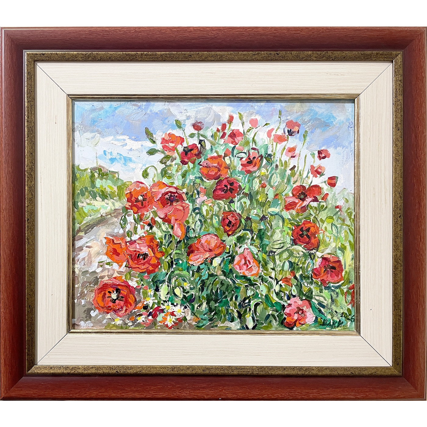 Летен букет. Щедра е земята на цветя презэ лятото и ярка на цветове. Маковете възпявани многократно от много творци възхитиха и нас и тук ви представяме едно наше усещане за тях. Много светлина и цветова насита носи този букет с макове и други летни цветя.