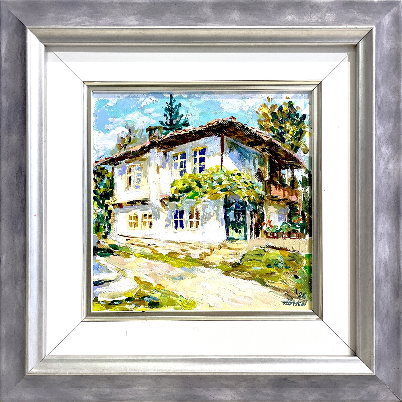 Летен пейзаж с приятна топла гама,наситеност на цвета, разкош от меки топли нюанси. Спокойствие и лъчите на лятното слънце облъхват с топлина старата къща и старицата под кьошке. Един от любимите ми мотиви от Еленския Балкан.