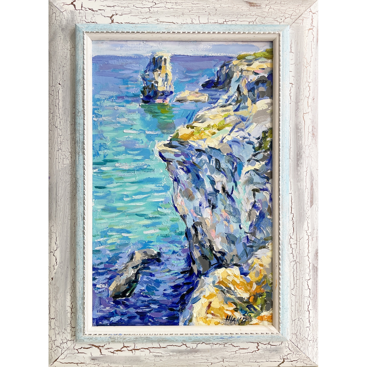 Скалата край Тюленово. Най-забележителното местенце на нашето северно Черно Море. Скалите край Тюленово всяка година привличат много любители на морската красота. Една картина изпълнена с много емоция и показваща различните светлинни състояния на пейзажа. Приятна морска гама подсилена с живописни розови и неутрални тонове.