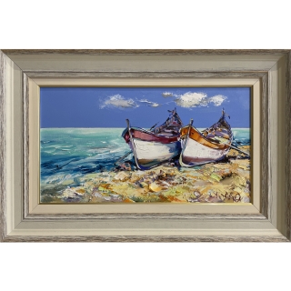 There are many summer landscapes saturated with the blue of the sea and the yellow of the summer fields. The landscapes of Balchik and the Botanical Garden with the big cacti, the Palace of the Romanian Princess, the beautiful jars at the entrance, the carpet of flowers always welcoming us every time! Well, the Landscapes with houses - from the old Nessebar, which we still strive to recreate the same - from twenty years ago, when everything "showed" us without hiding the old and slightly torn walls, the Metropolis with the Divine shadows from its arches, the peeled boards from the houses and the windows we all liked so much. The beautiful Church at the entrance of the old town, the only remaining Mill of the Isle! We can prove the same for the old Sozopol. Who doesn't remember the old women with drooping glasses on their noses, looking good, we hope we like wands and knits hung like fishing nets! Here is the spirit we offer you! These are our experiences under the masks of paint and the expression in the canvases, messages from our hearts.