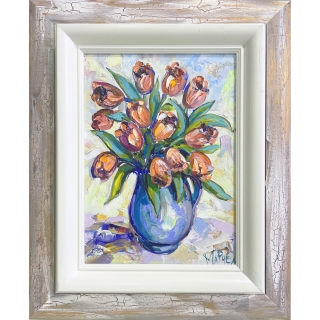 Summer bouquets describe another beauty - that of irises, sunflowers, poppies and fields with them, the field flowers and their aroma in the sun! What about roses !? Oh, amazing us with their strong and very heavy color, multi-leafed and simpler, they spray their aroma from the canvases as well! Sometimes narrated in a more pastel way, other times with more accent-relief.