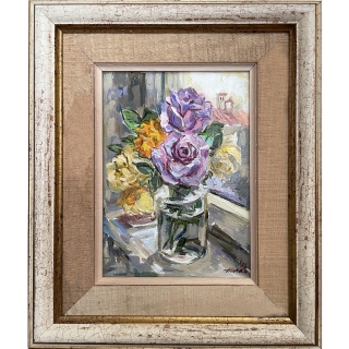Spring flowers snowdrops, crocuses, bluebells. Painted on Italian canvas with high quality paints. Incredible brightness and realism