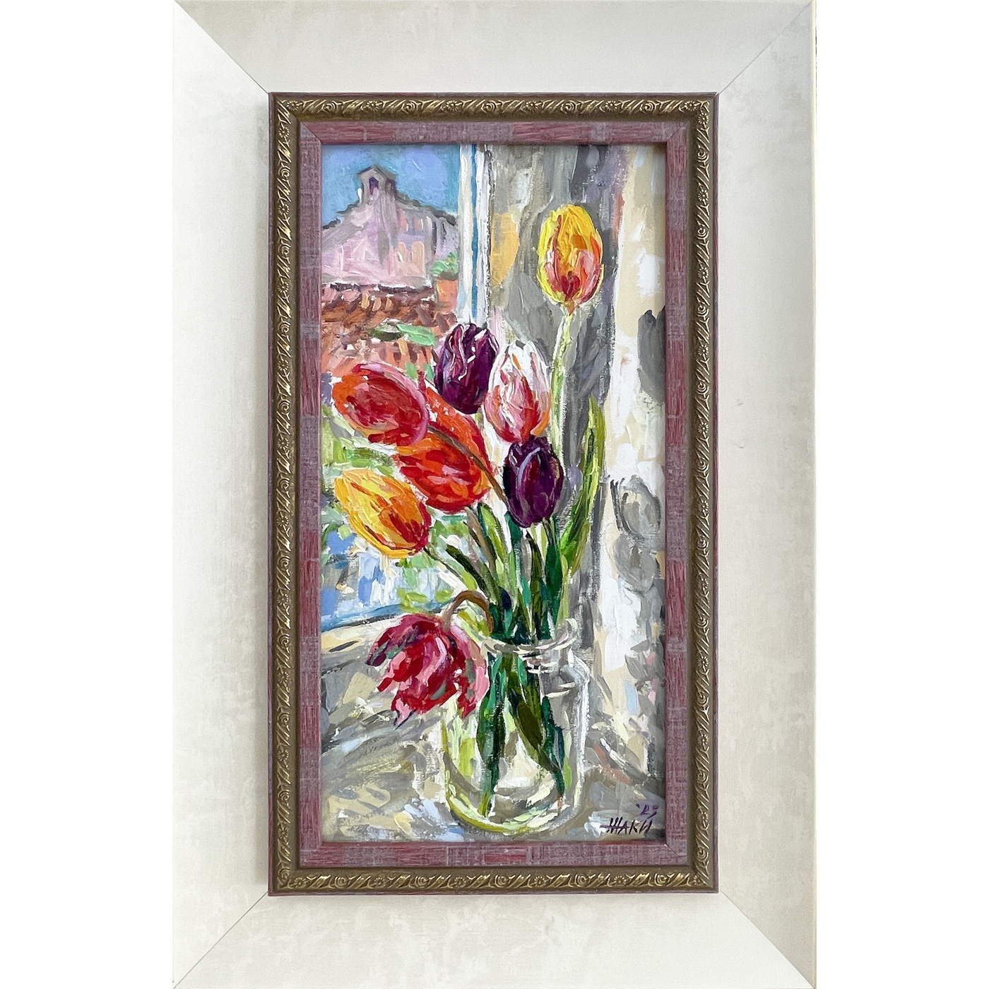 Тази картина с червени лалета носи много удоволствие. Изпълнена с наситени топли и ярки цветове, разкрива завладяващата красота на лалетата.