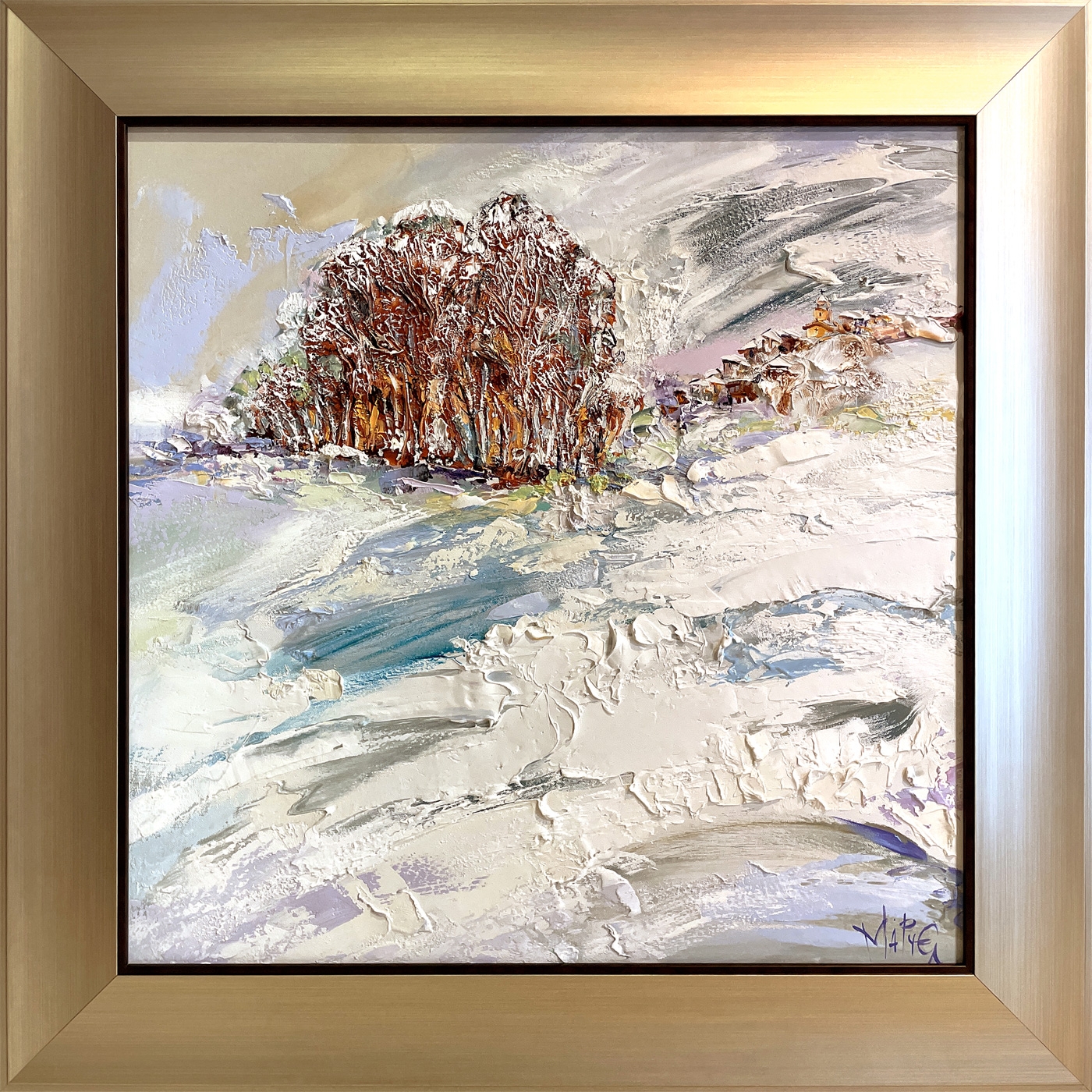 Зимно утро разкрива приказността на кристално чистото бяло, топлите нюанси на българската къща и нейния уют. Картината разкрива динамиката на зимата и характерния на моменти контраст в тоновете.