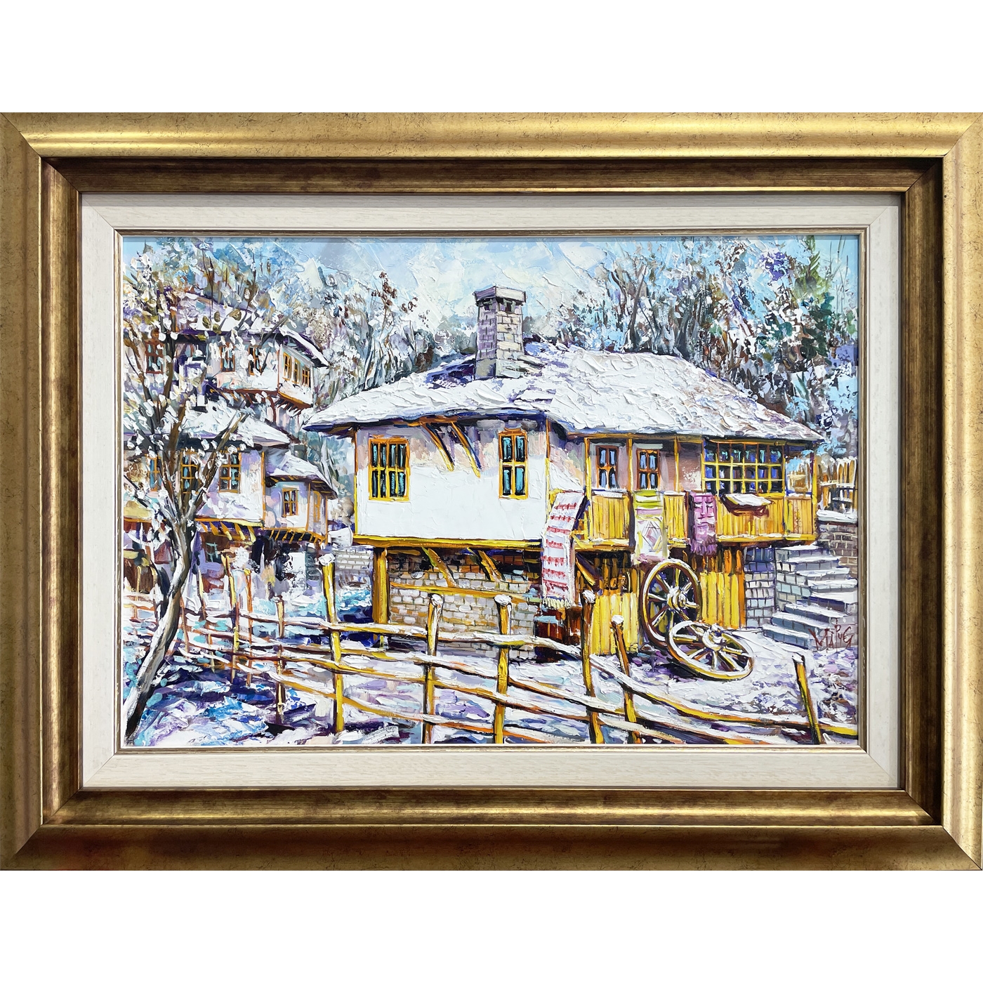 Зимна приказка от Боженци.Старата къща, сега музей, е притисната в тихата завивка на снега.